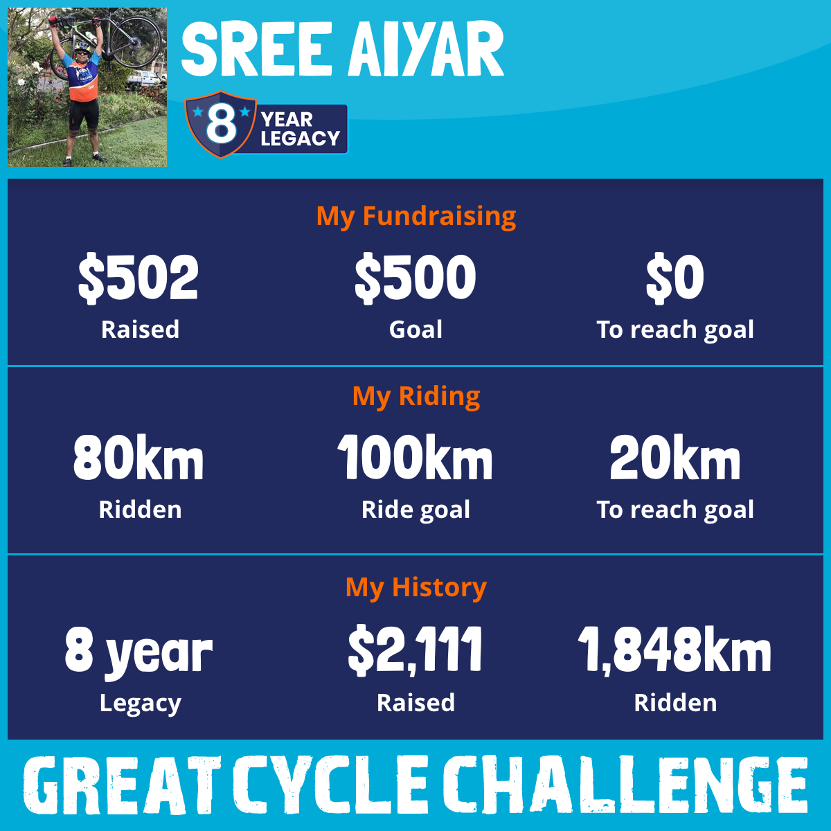 And so I am riding and raising funds to support the Children's Medical Research Institute to continue their work into the prevention, diagnosis, treatment and finding a cure for childhood cancer.