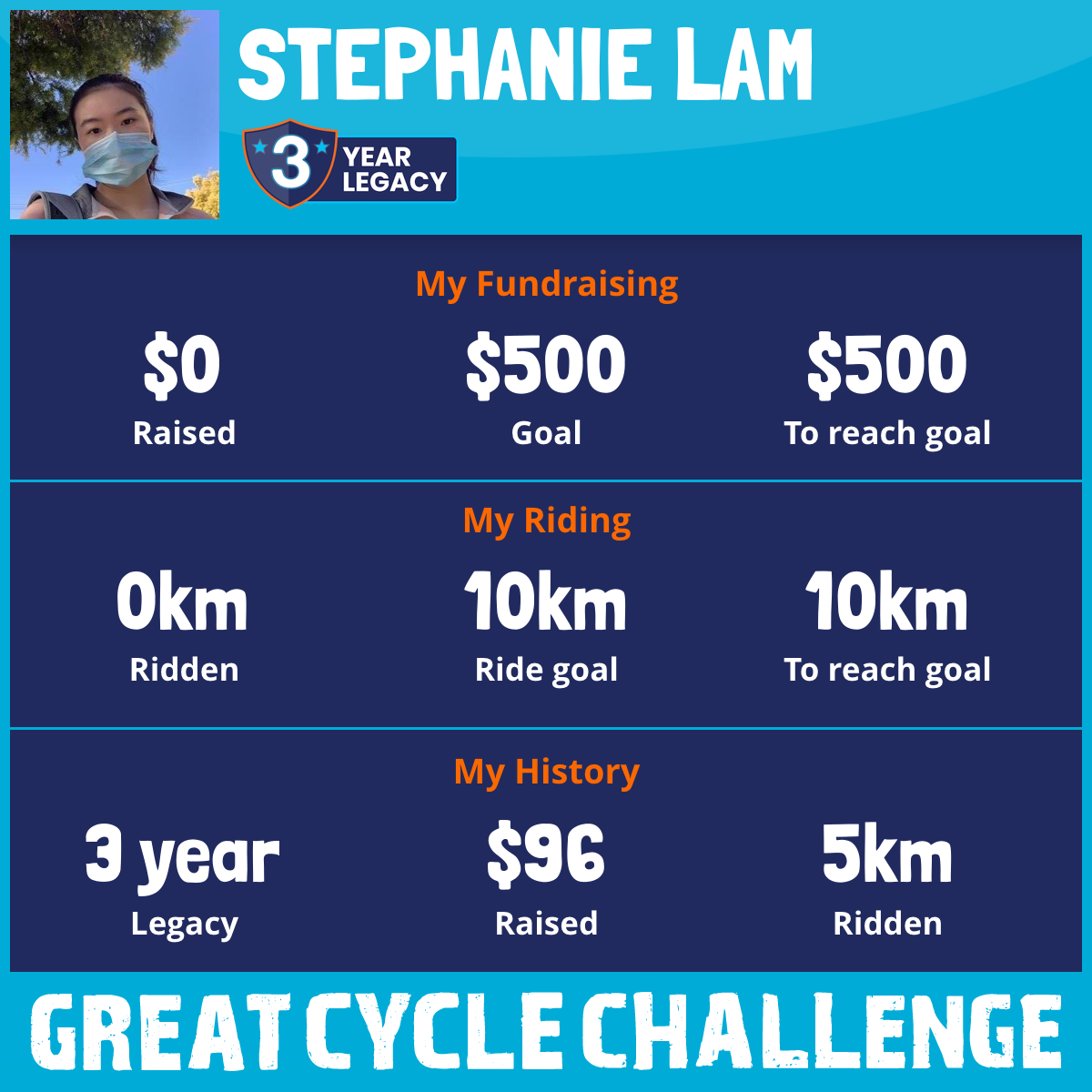 5 km Ridden$96 Raised2021