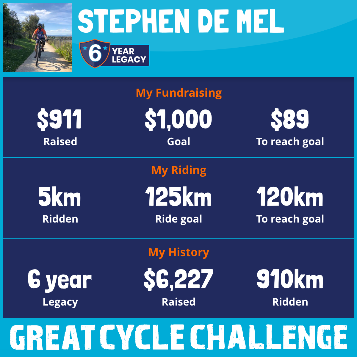 And so I am riding and raising funds to support the Children's Medical Research Institute to continue their work into the prevention, diagnosis, treatment and finding a cure for childhood cancer.