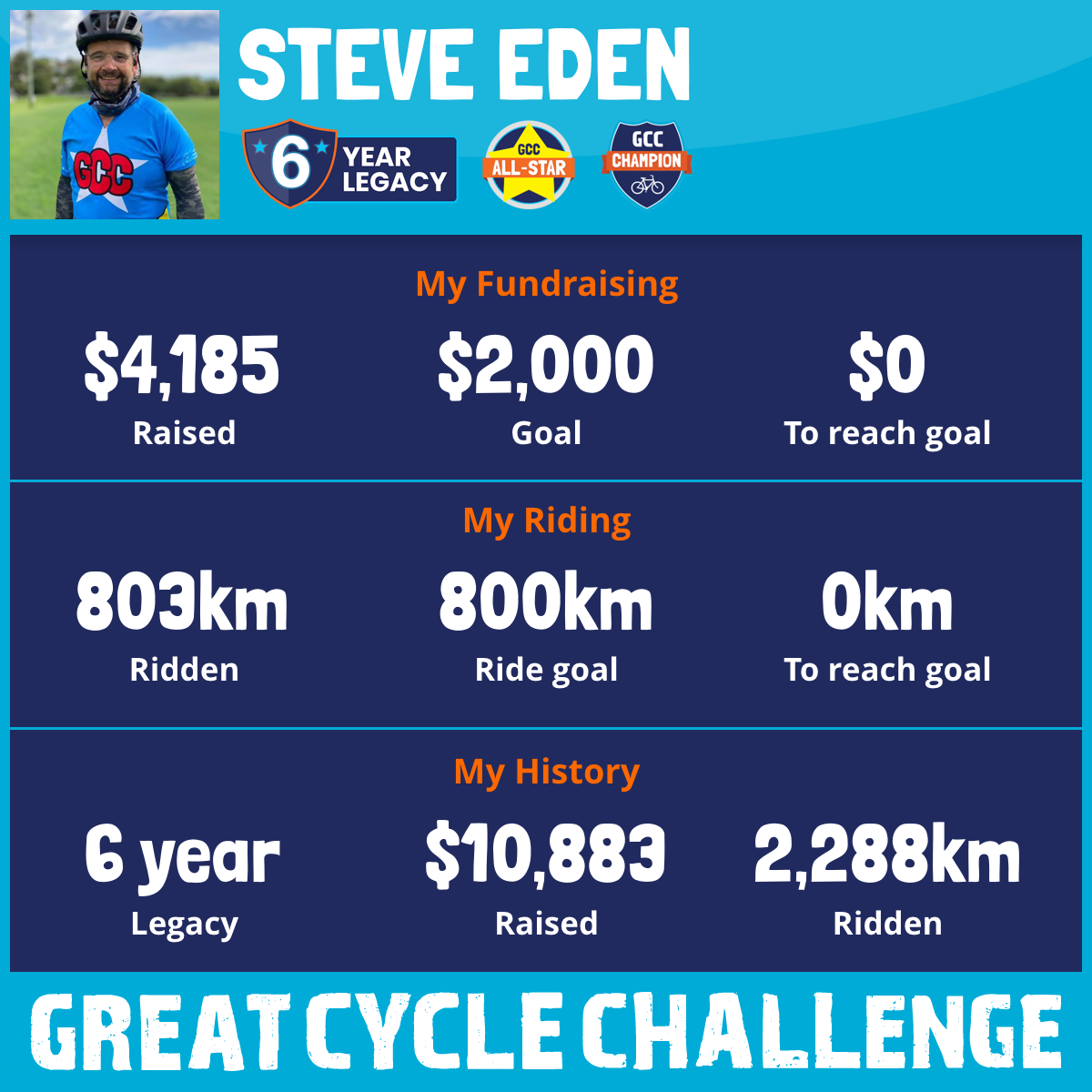 803 km Ridden$4,185 Raised2026