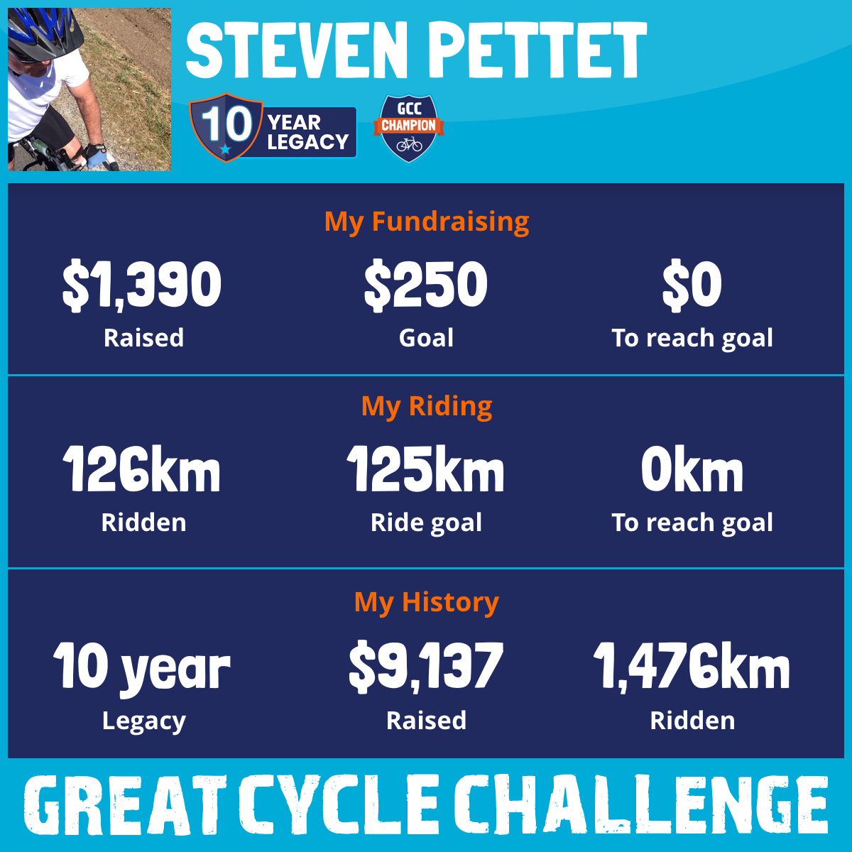 126 km Ridden$1,390 Raised2026