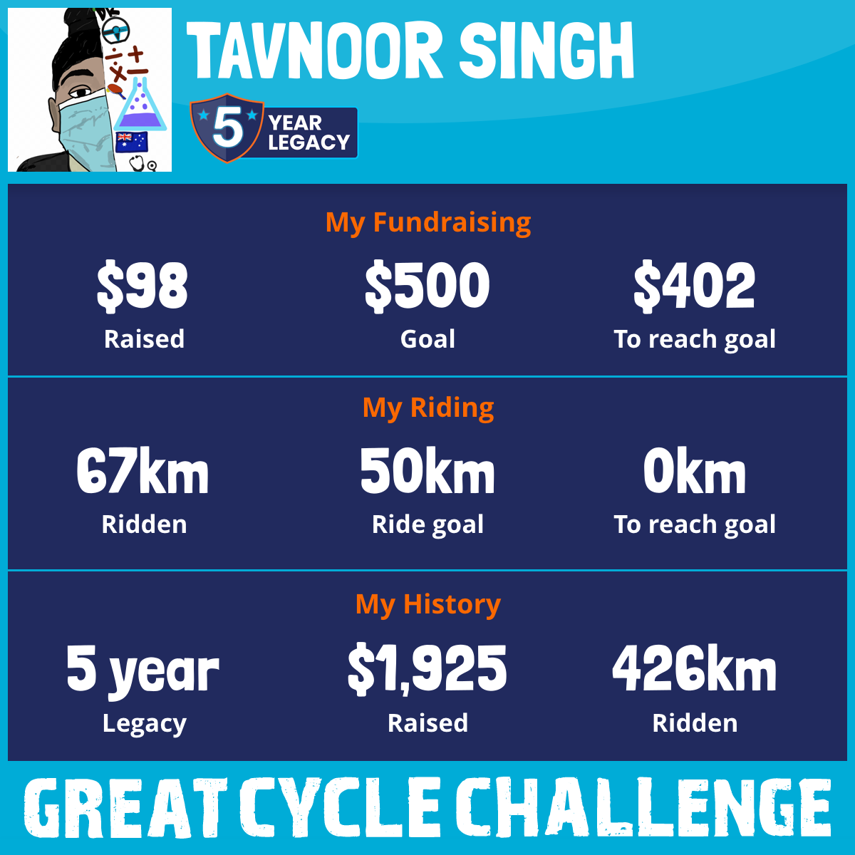 67 km Ridden$98 Raised2025