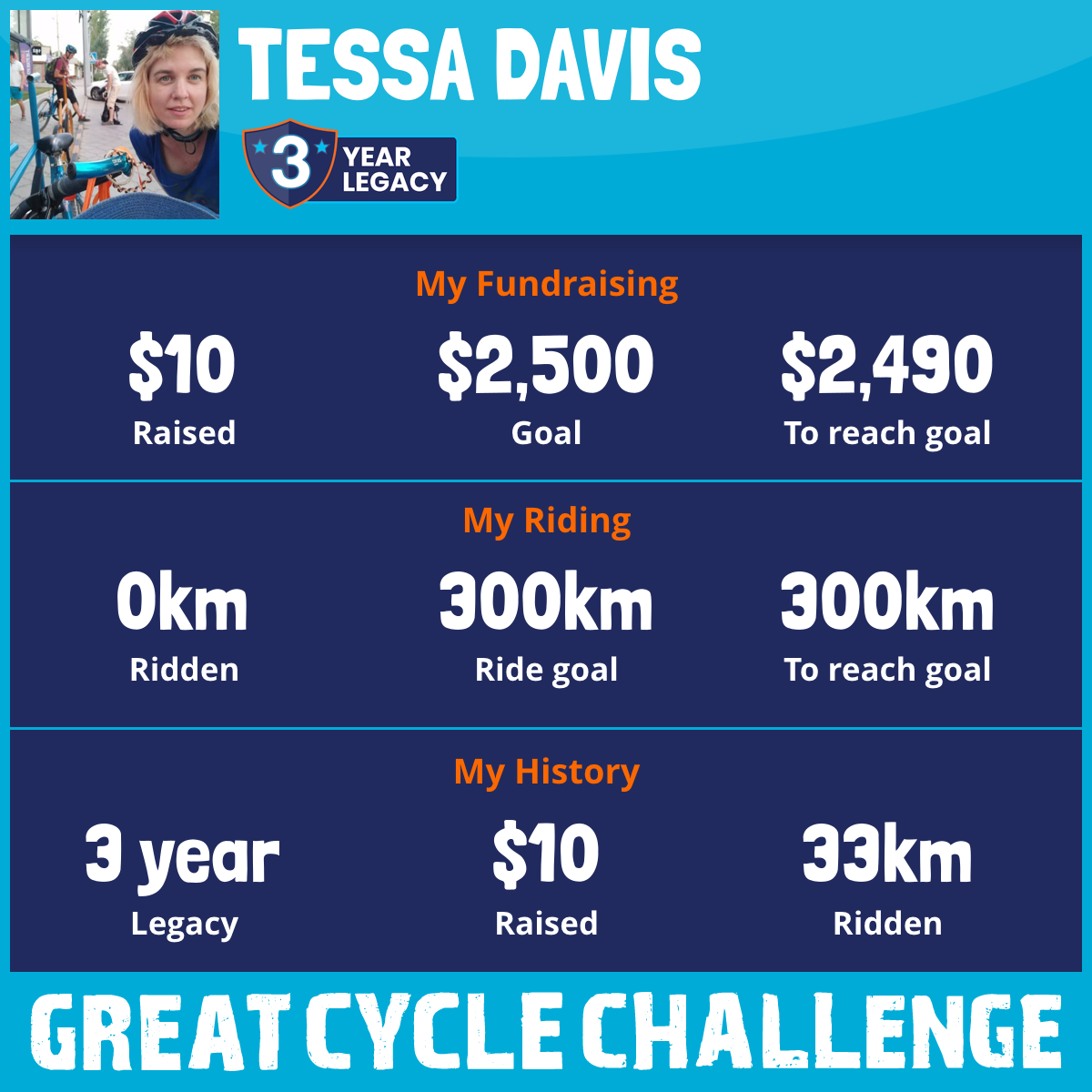 And so I am riding and raising funds to support the Children's Medical Research Institute to continue their work into the prevention, diagnosis, treatment and finding a cure for childhood cancer.