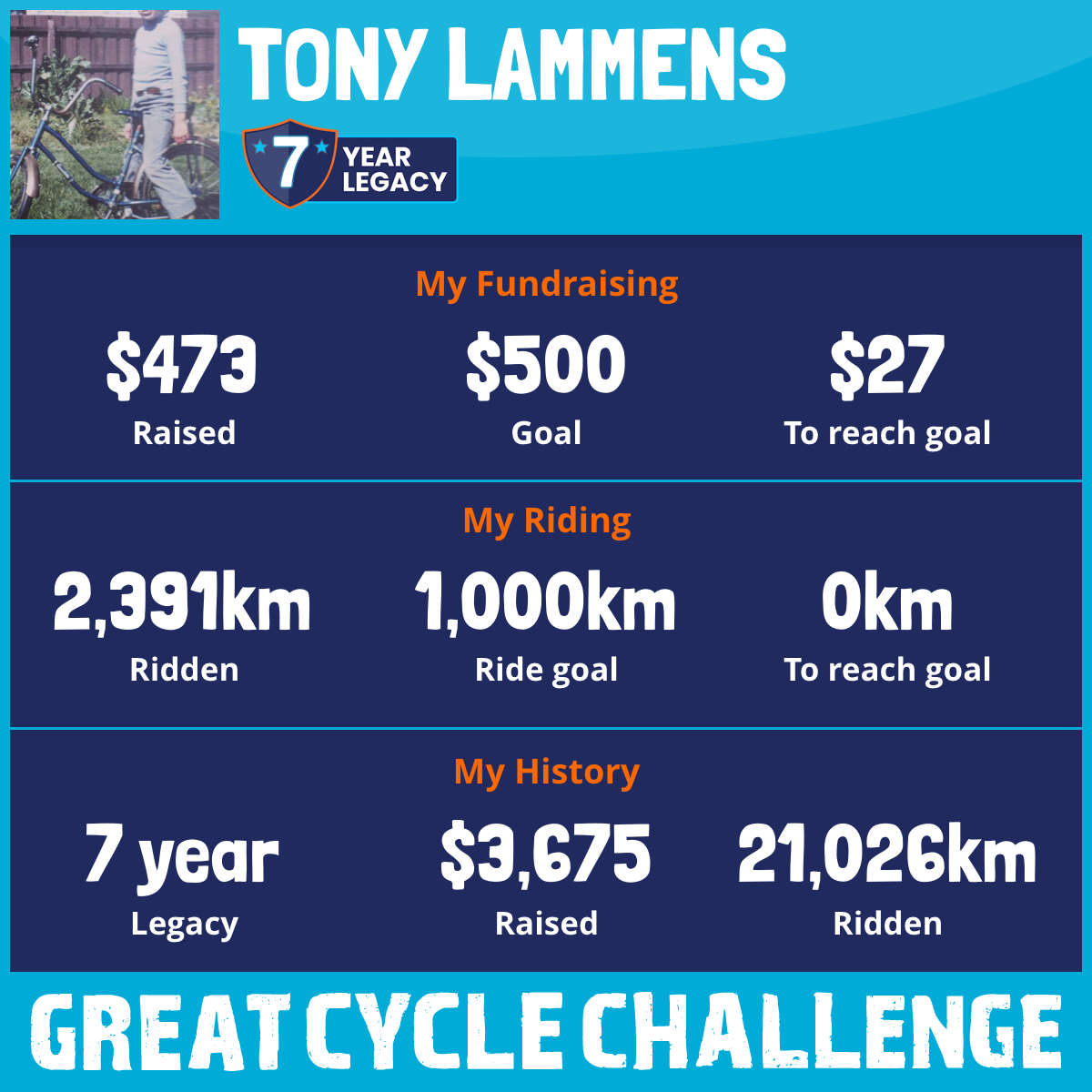 And so I am riding and raising funds to support the Children's Medical Research Institute to continue their work into the prevention, diagnosis, treatment and finding a cure for childhood cancer.