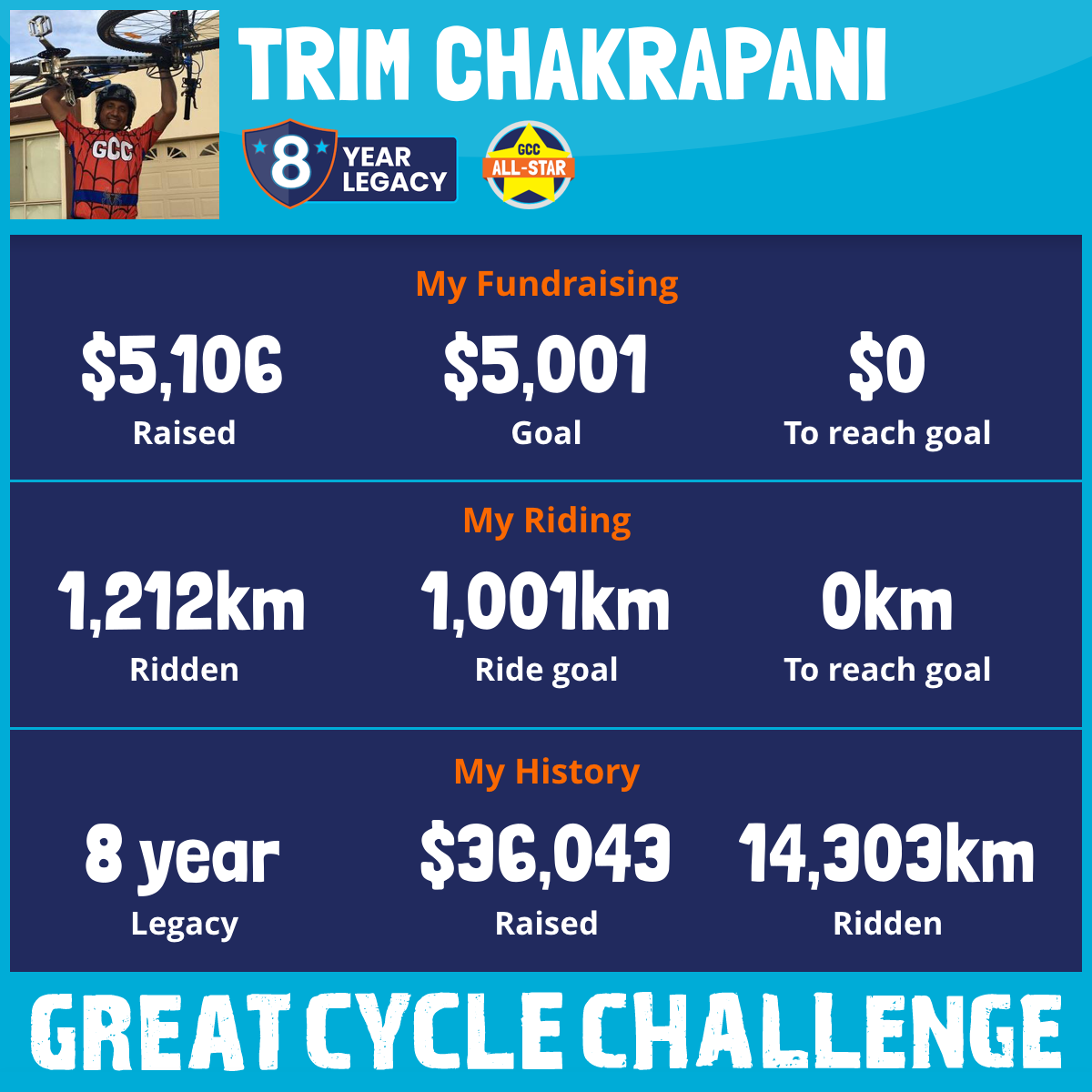And so I am riding and raising funds to support the Children's Medical Research Institute to continue their work into the prevention, diagnosis, treatment and finding a cure for childhood cancer.