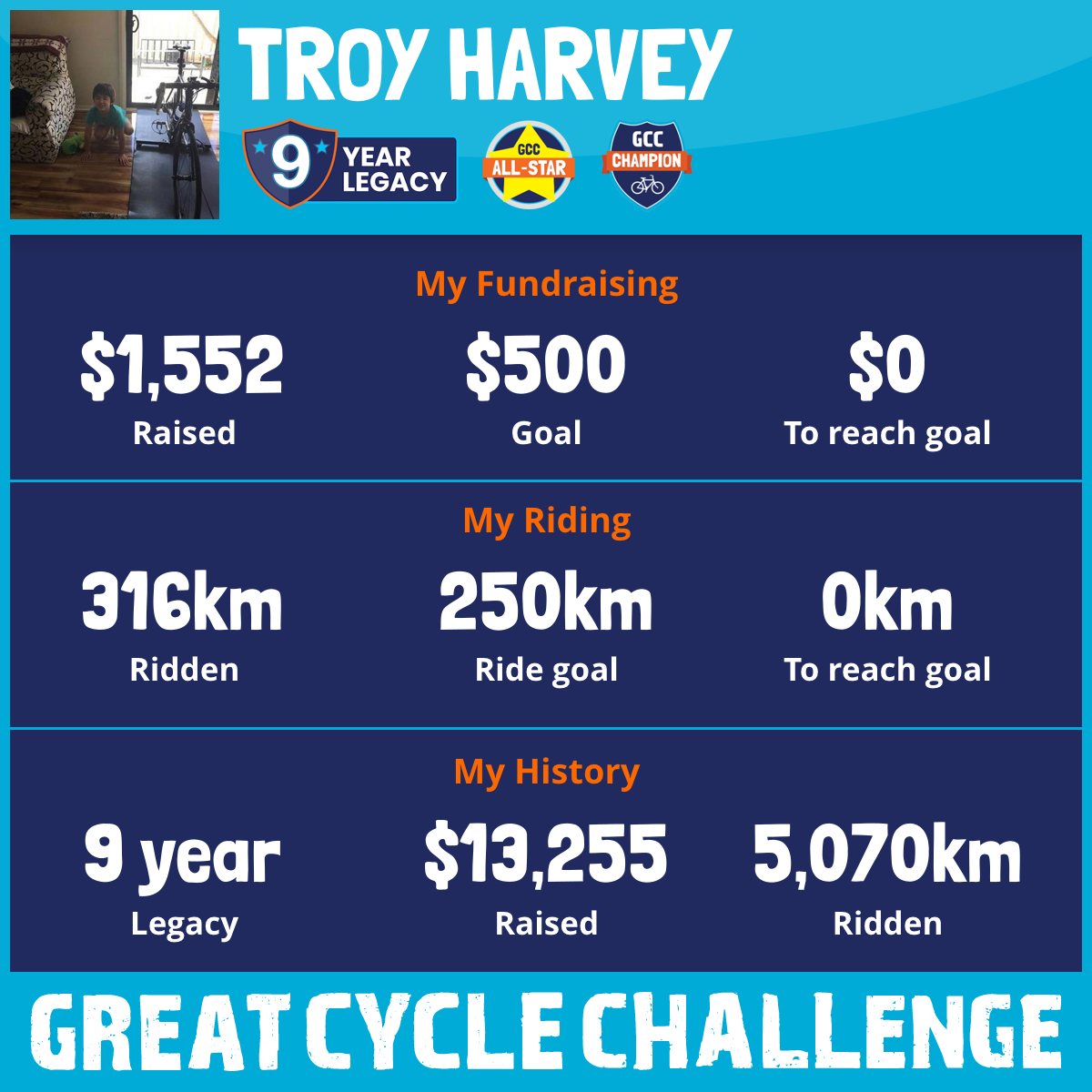 316 km Ridden$1,552 Raised2026