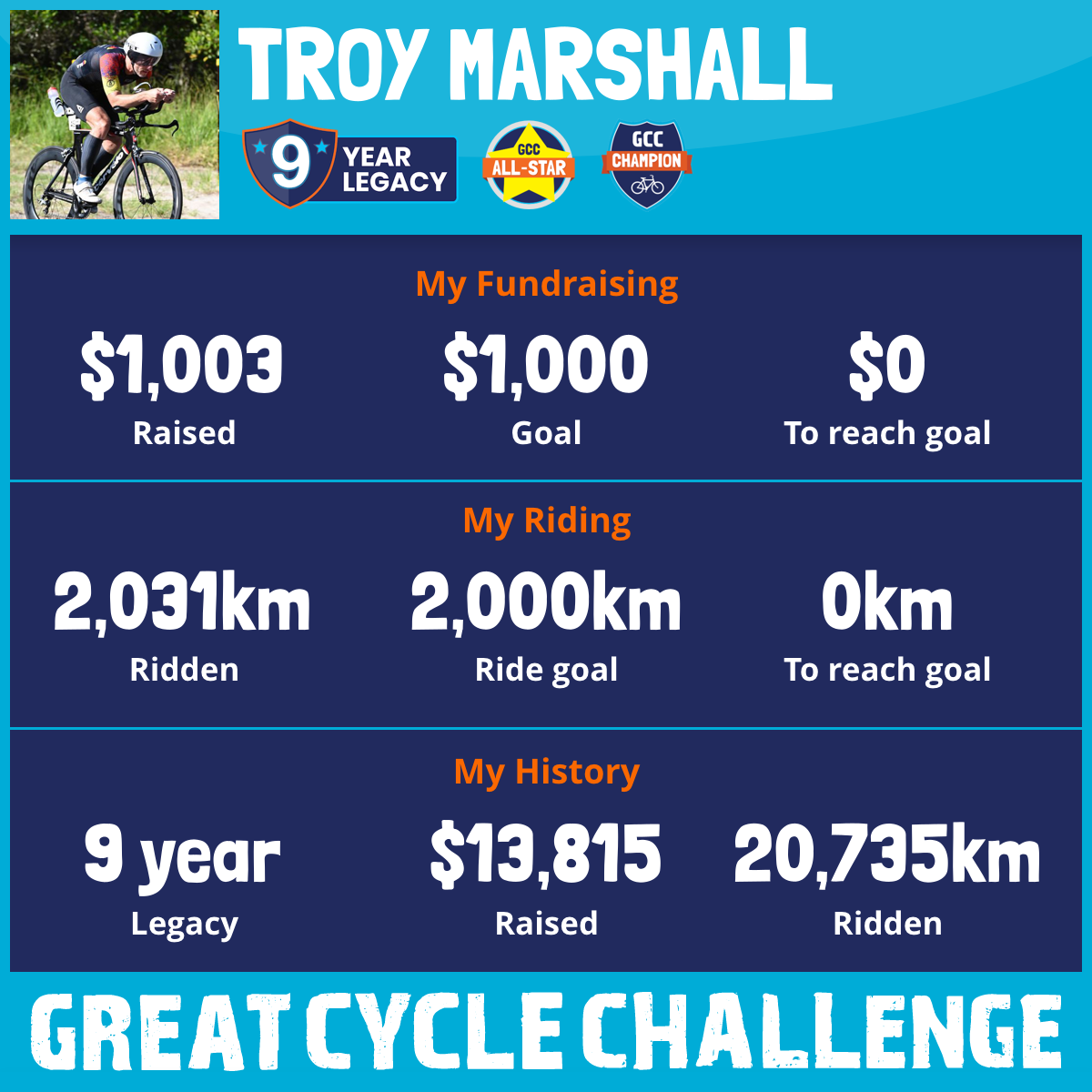 2,031 km Ridden$1,003 Raised2026