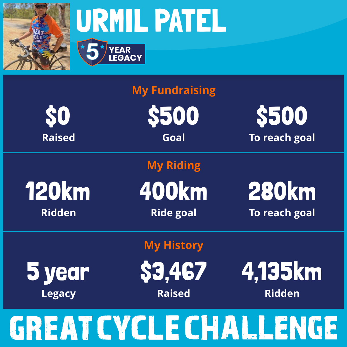 643 km Ridden$1,125 Raised2024