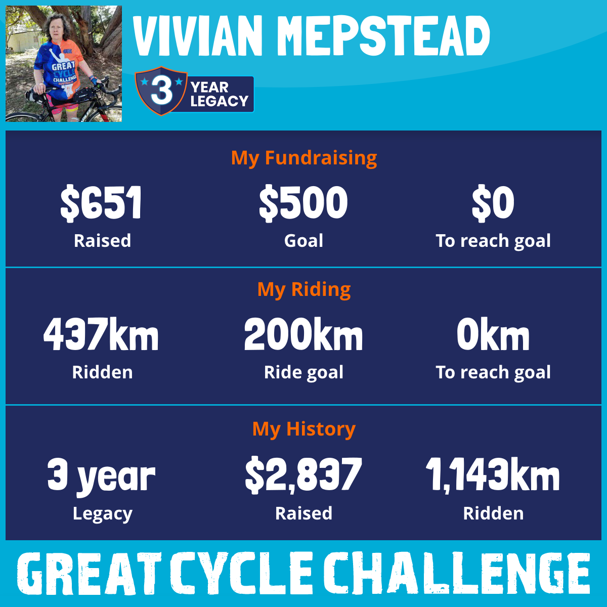 437 km Ridden$651 Raised2025