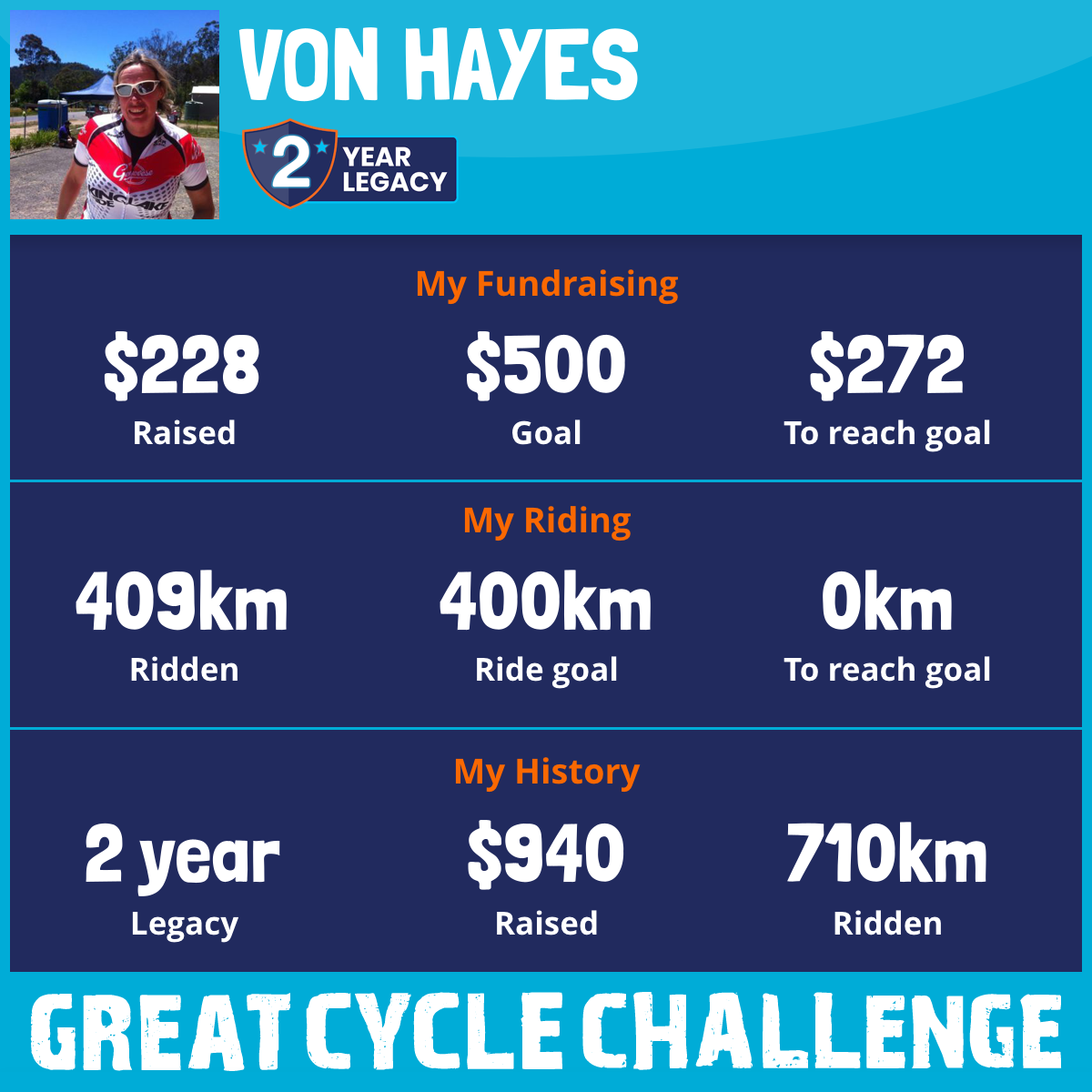 409 km Ridden$228 Raised2025