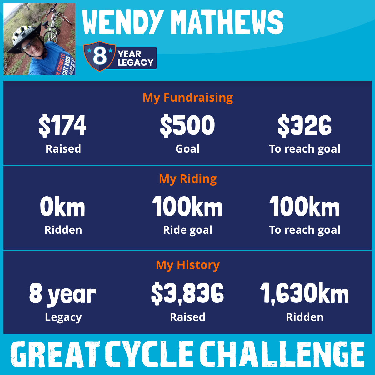 And so I am riding and raising funds to support the Children's Medical Research Institute to continue their work into the prevention, diagnosis, treatment and finding a cure for childhood cancer.