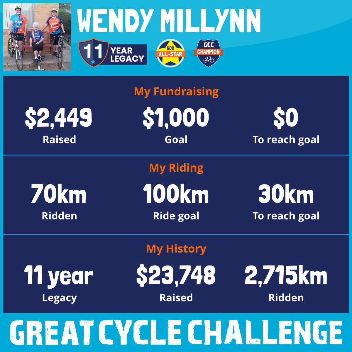133 km Ridden$3,925 Raised2023