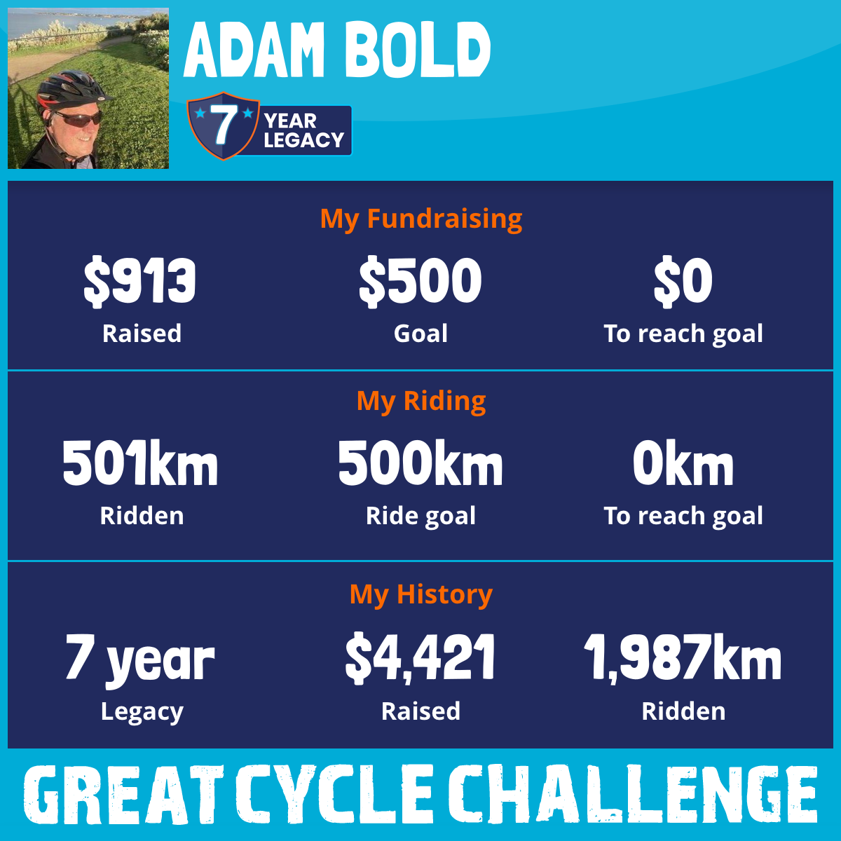 501 km Ridden$913 Raised2026