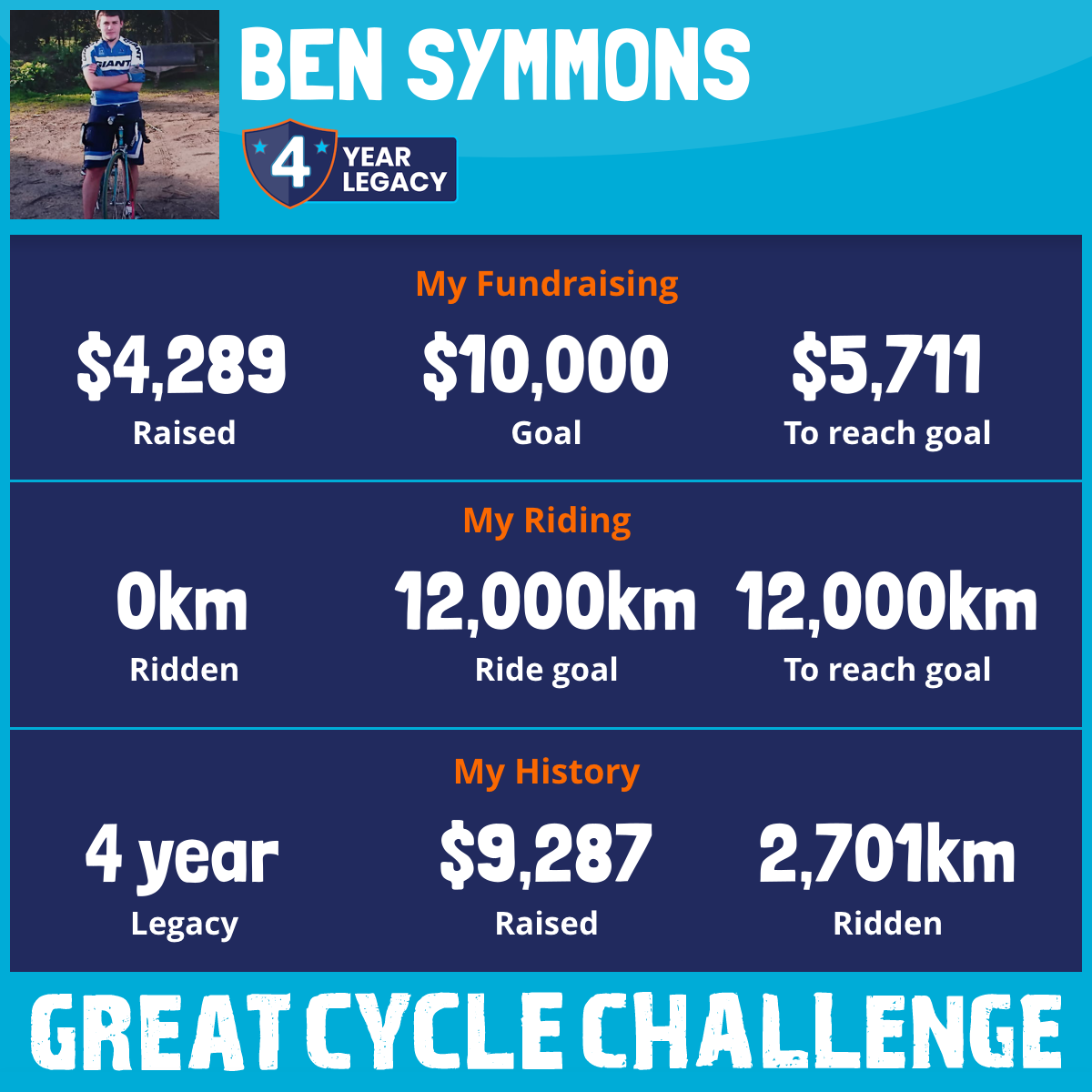 1,200 km Ridden$1,745 Raised2021