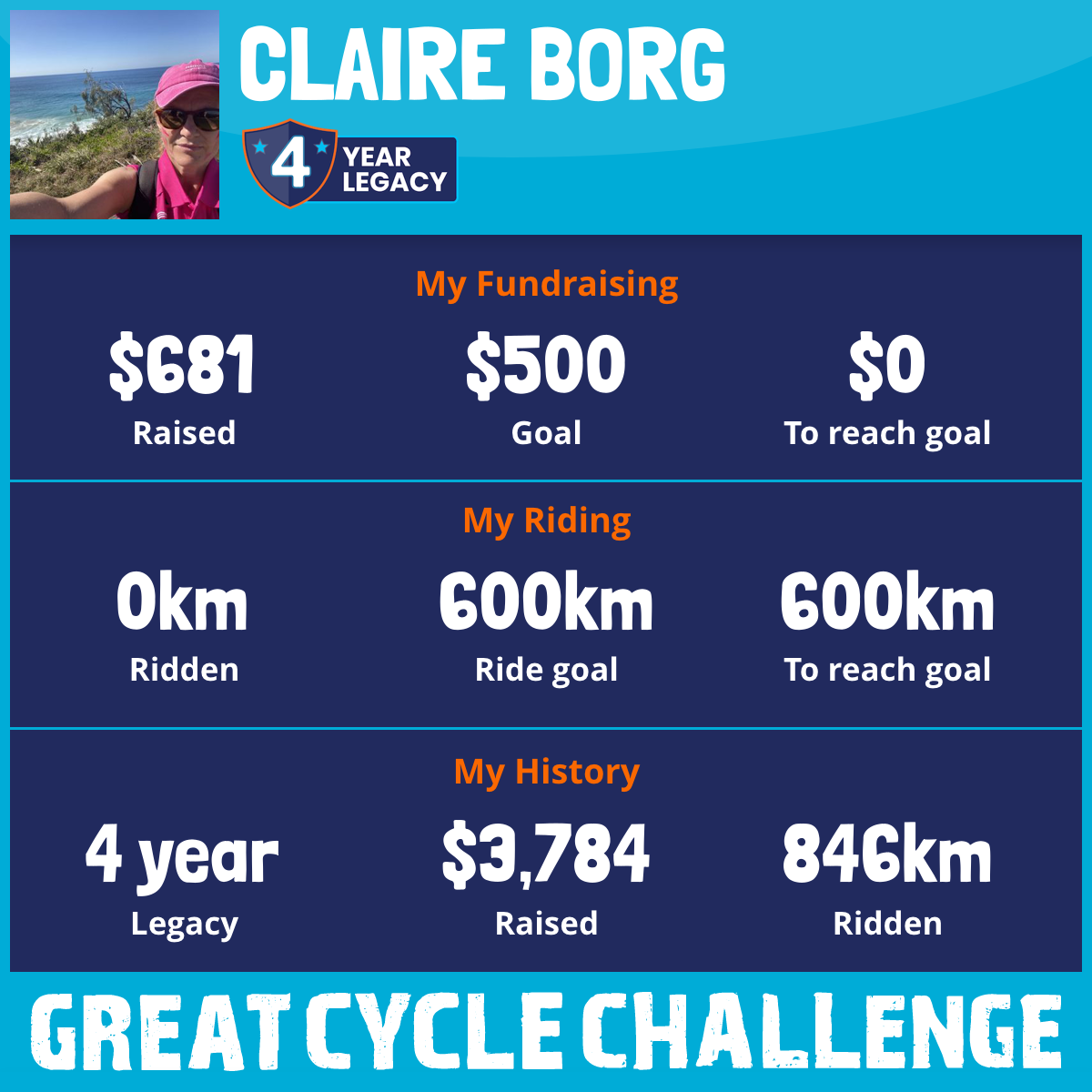 834 km Ridden$1,500 Raised2015