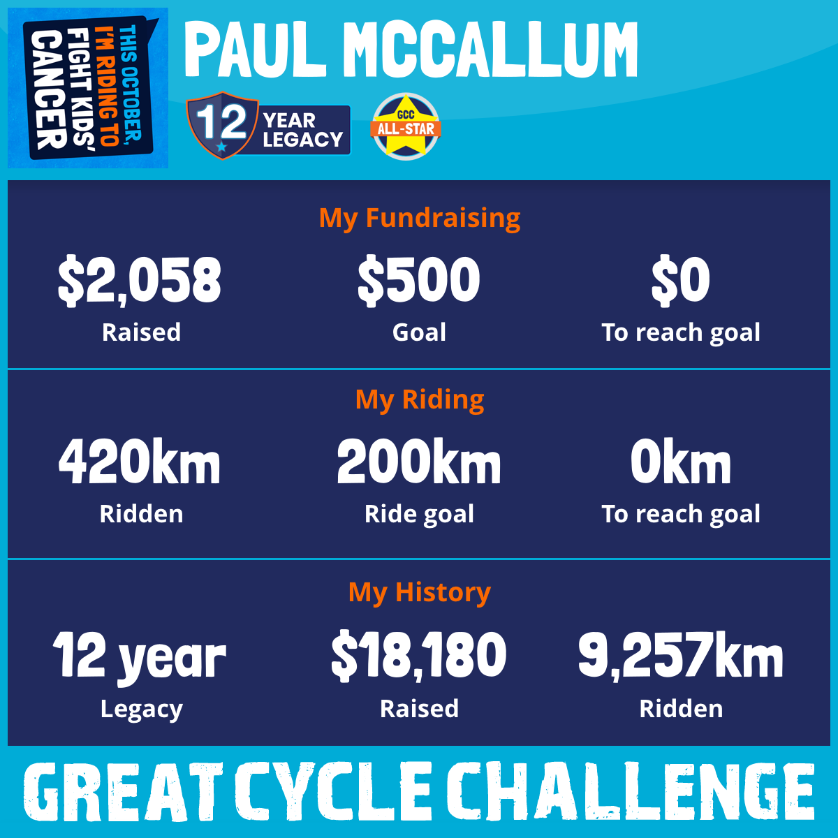 And so I am riding and raising funds to support the Children's Medical Research Institute to continue their work into the prevention, diagnosis, treatment and finding a cure for childhood cancer.
