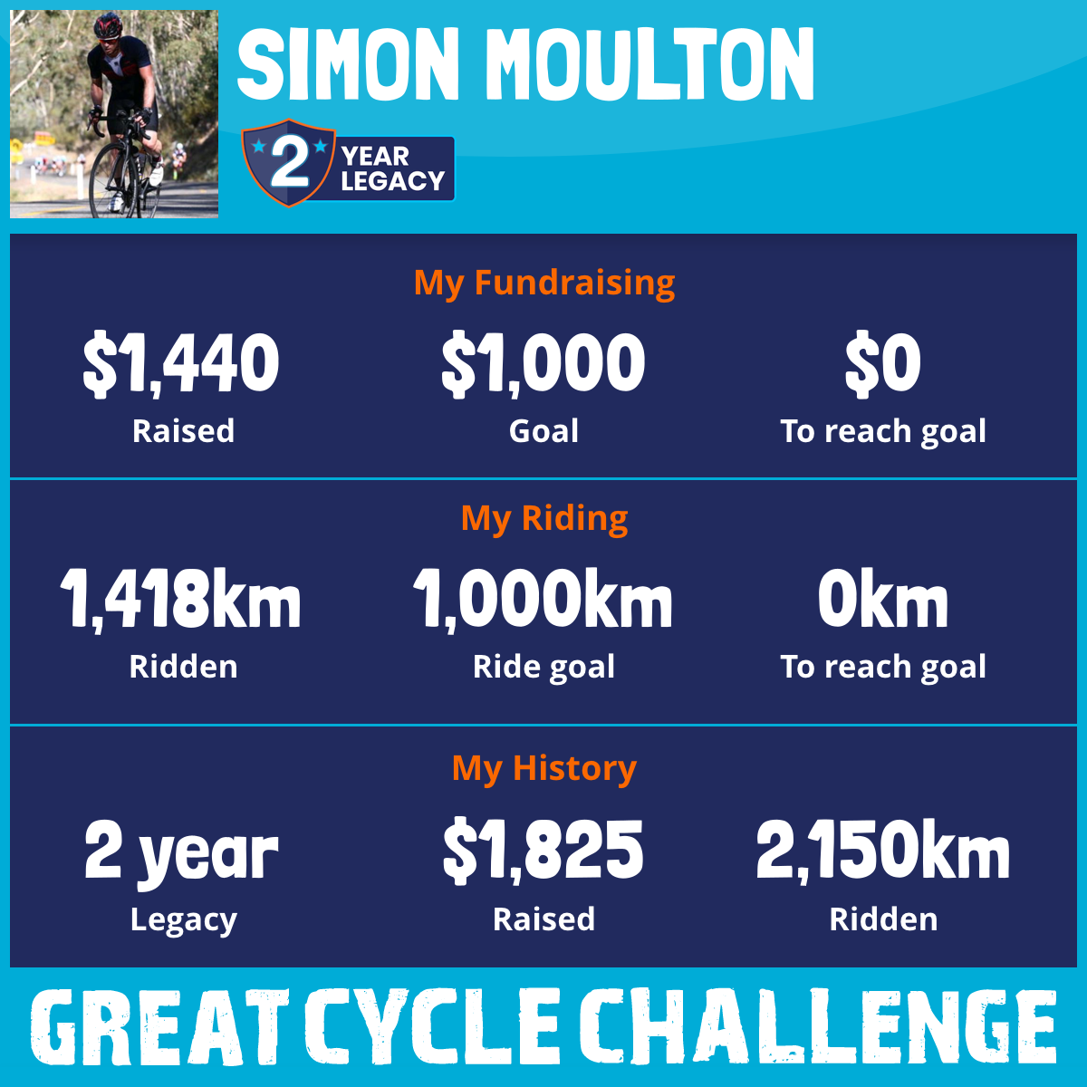 2,218 km Ridden$1,440 Raised2026